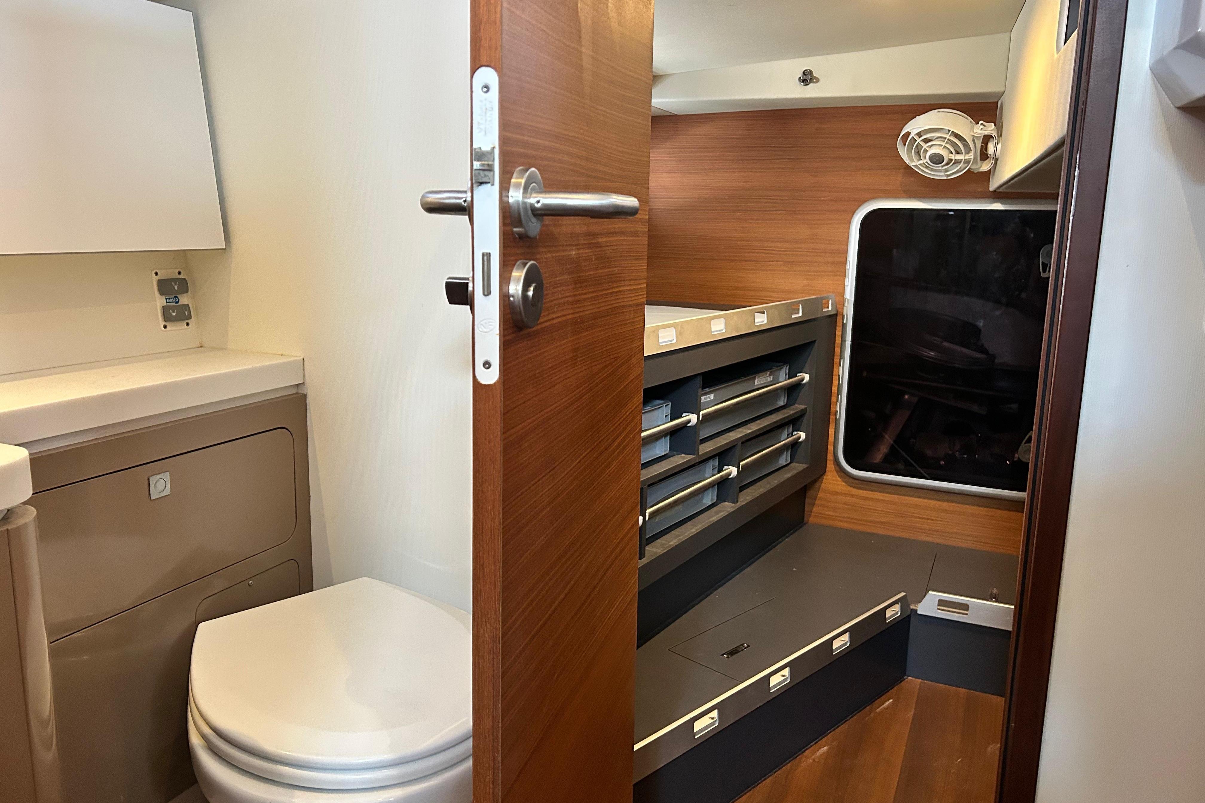 This is a comfort version with two cabins, each with its own bathroom with Separate shower compartment and WC. The Forward cabin has its own private bathroom with shower and WC.